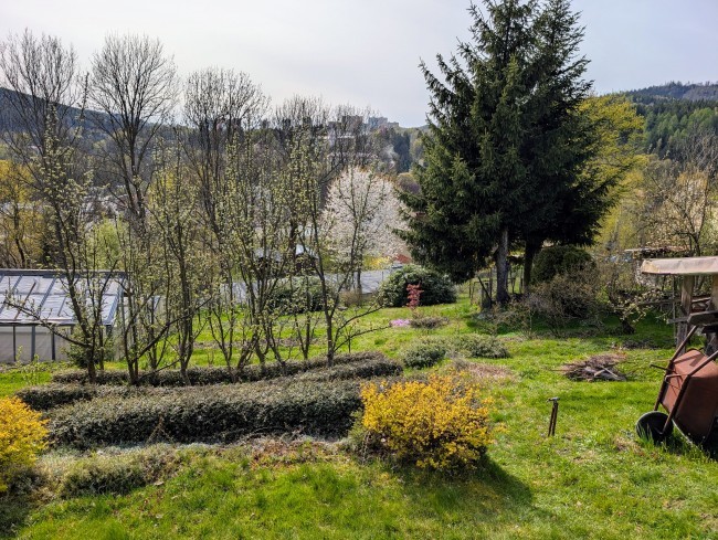 Stávající porost: okrasné a ovocné stromy